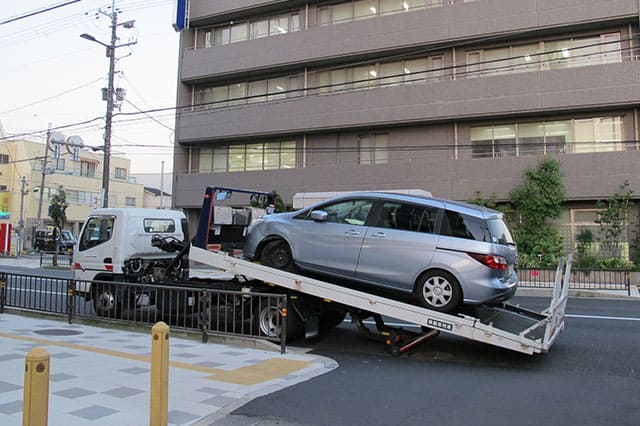 場合によっては、解決できない場合もあり、その際はレッカー車や積載車で修理工場へ運びます。