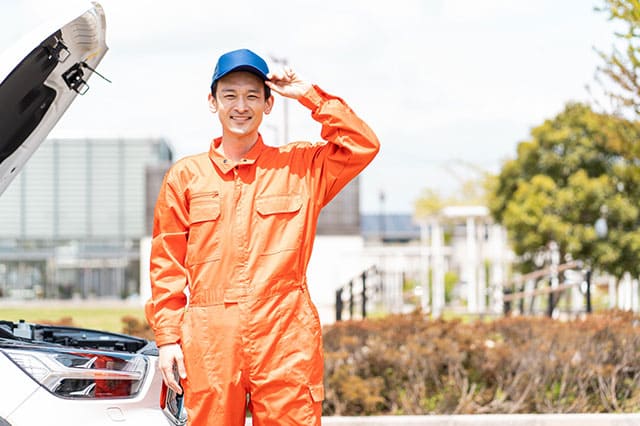 車が急に動かなくなった場合、現場に急行し、バッテリー交換やタイヤ交換などの作業を行います。